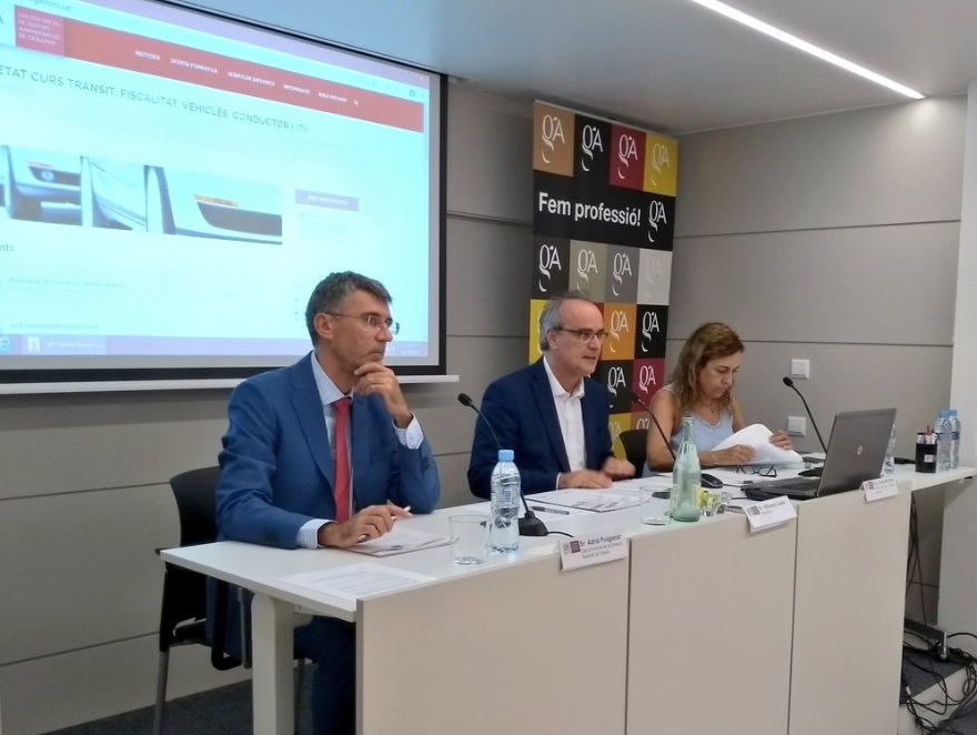 El passat dilluns 1 d’octubre Alfonso Lluzar, president del Col·legi Oficial de Gestors Administratius de Catalunya, va presentar el curs “Trànsit: vehicles, conductor, itv i fiscalitat dels vehicles”, acompanyat d’Adrià Puigpelat, cap provincial de Trànsit de Barcelona de la DGT, i Elizabeth Ibars, delegada d’Stop Accidents a Catalunya, que va oferir la conferència inaugural “Prevenir la sinistralitat: la inversió de la vida”.